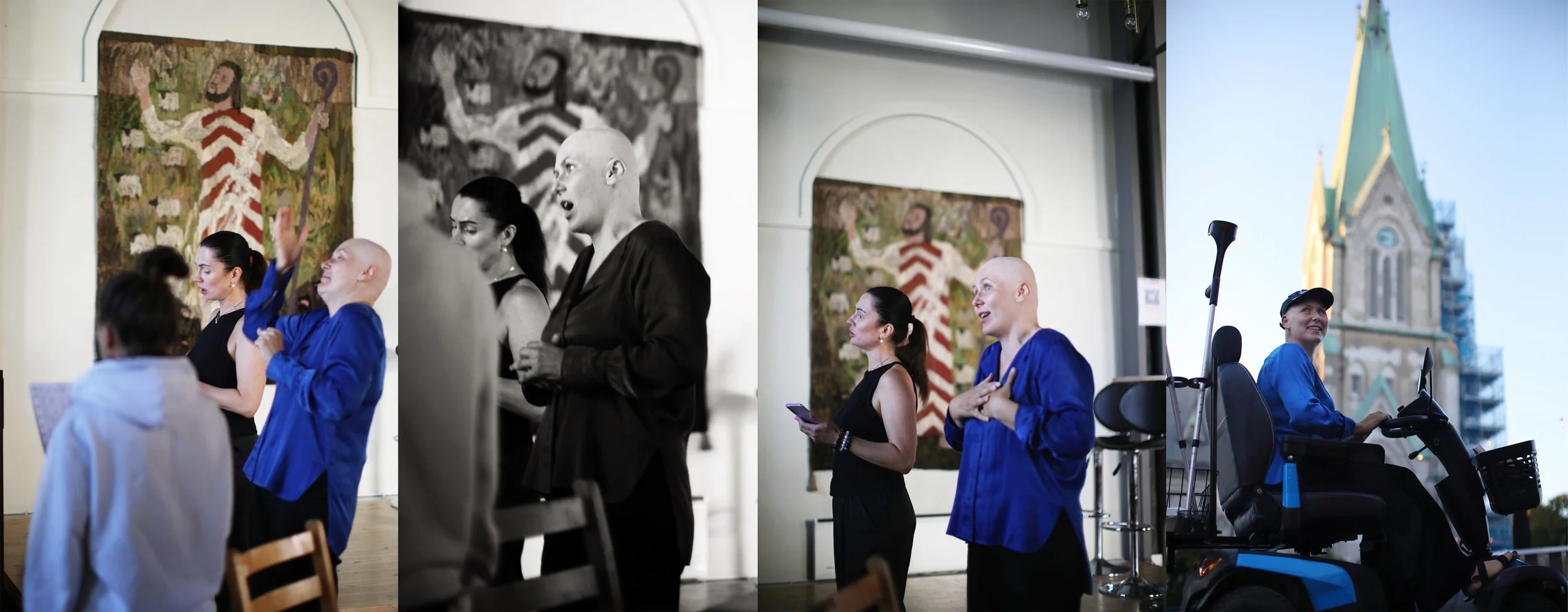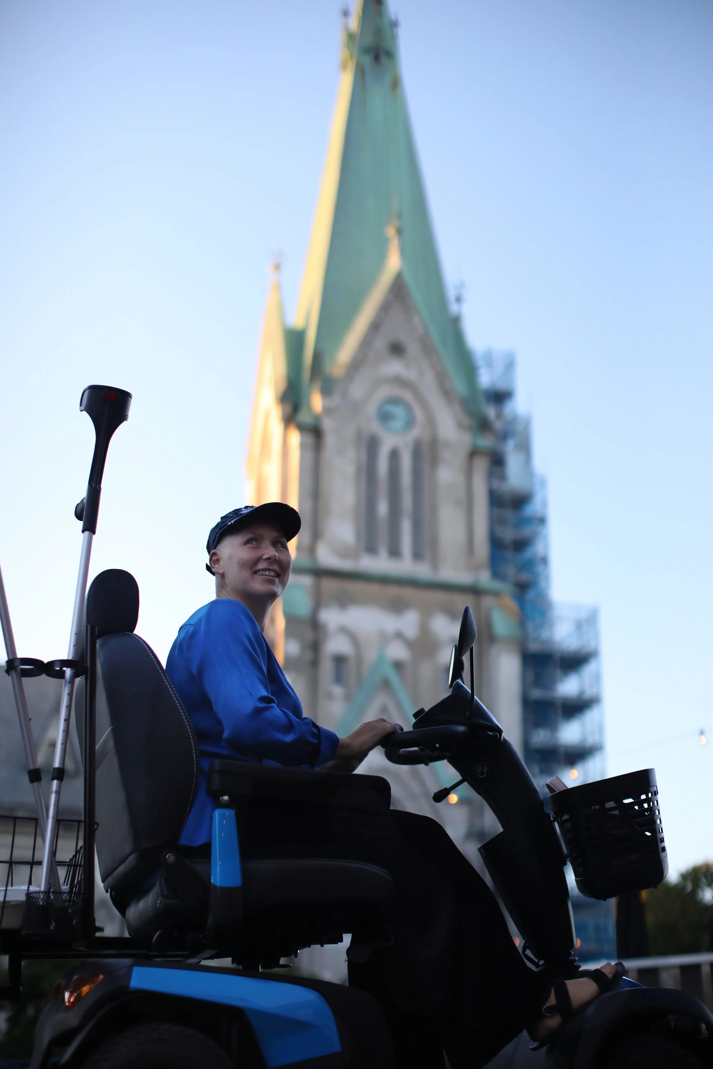 Olena sang Ukrainian pop and folk songs to the hospital staff and patients, pausing for the effect and translating the impactful lyrics into Norwegian. Later on, she confessed that she often tries to spread the “Ukrainian cheer” and good vibes to anyone who will listen. She wants to keep the country in Norwegians' minds and further the positive associations between Norwegians and Ukrainians (thereby hopefully warming up to a continued refugee support). If Olena succeeded to do that while on the second of three days of chemo, what on earth can stop this woman when she is living her best and healthy life!? Did I mention that Olena moves about the world on one leg? She lost her other leg on May of 2022; it has been replaced with a fabulous prosthesis that reads “Glory to Ukraine”. Olena proudly shows it off as a constant reminder of Ukrainian endurance.